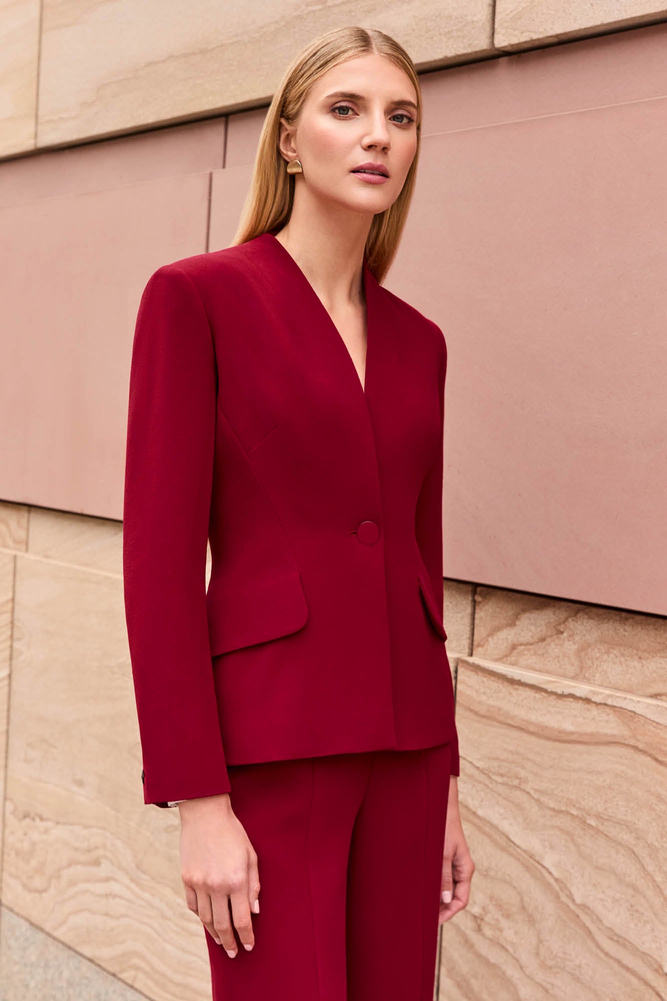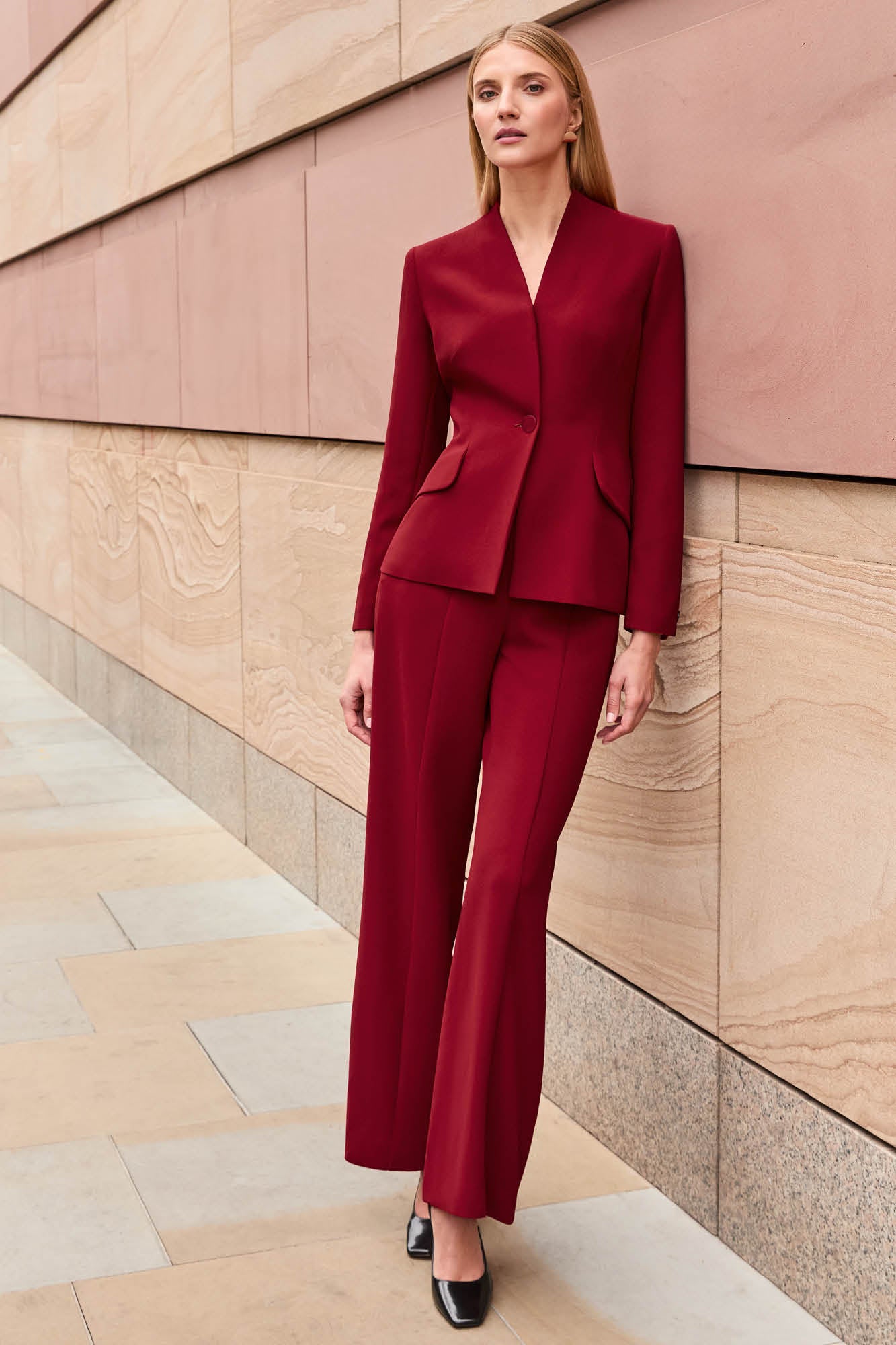 Expertly tailored in our London studio, shaping in the seams contours the figure for a softly angled silhouette. This smartly tailored jacket is all about the details with angled pockets that are both practical and flattering and covered buttons. Paired with the matching Harlequin trousers in bold Cardinal red create a head to toe modern look and embrace bright tailoring for sophisticated office style.