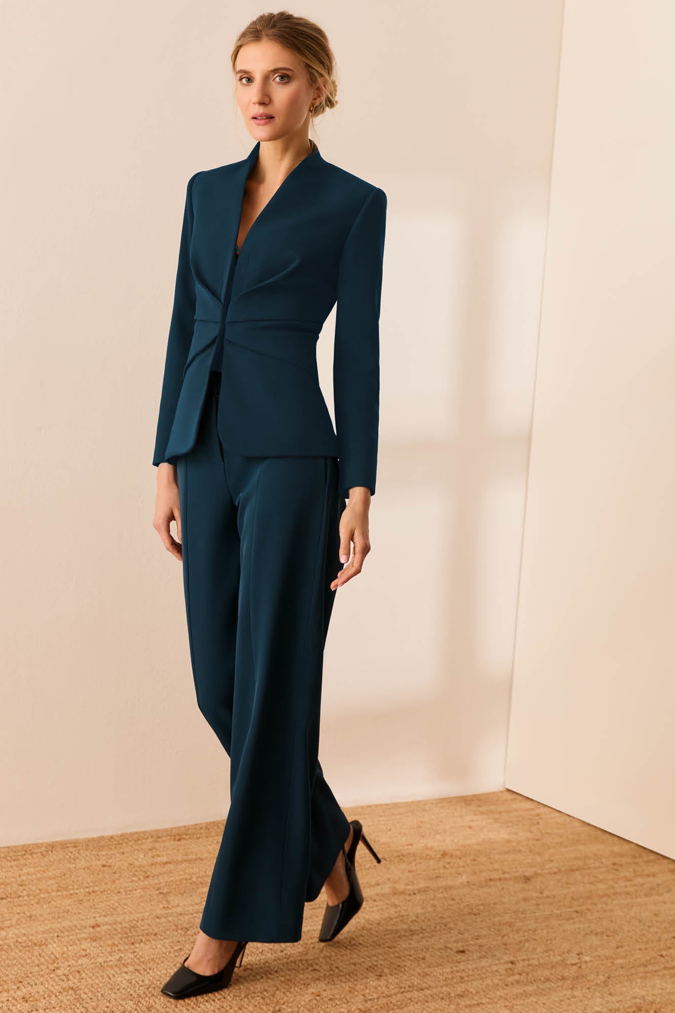 Designed for seamless sophistication, the Hanbury Jacket is the definition of sleek, elegant, professional style. Tailored to perfection, it is finished with a discreet inside hook fastening for a flawless look, the waist-accentuating pleat detail adds a touch of refined femininity. Ending at the hip, it pairs effortlessly with both trousers and skirts. For a polished ensemble, style it with our Davos Trousers and pair with a statement top.
