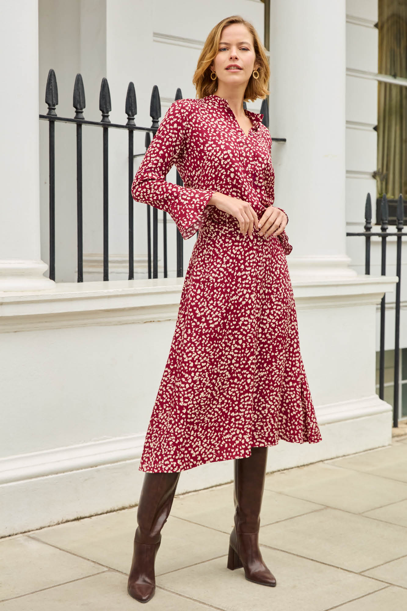 Charm your way through your workday with the Lyndhurst blouse. Cut in soft viscose in our Autumnal Feather print, with fluted cuffs. Designed for adaptability, this staple piece can be styled with almost anything to elevate your everyday look.