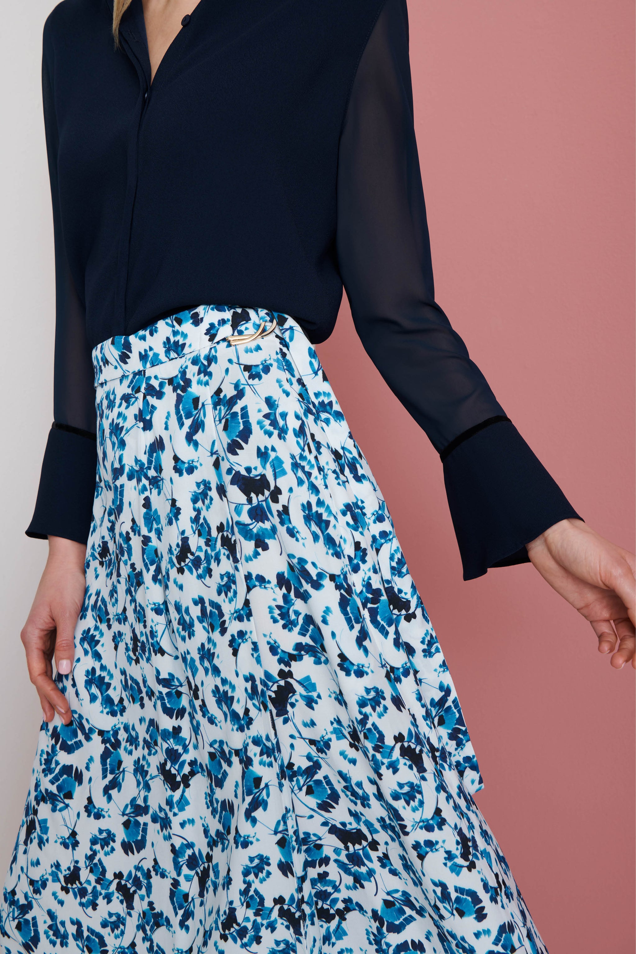 Combine comfort and style with the Hamble Skirt. This elegant wrap skirt crafted in our favourite viscose print falls just below the knee and details a timeless wrap belt with a feature D-ring, allowing for definition at the waist. Pair with a structured jacket to instantly elevate it for the workplace.