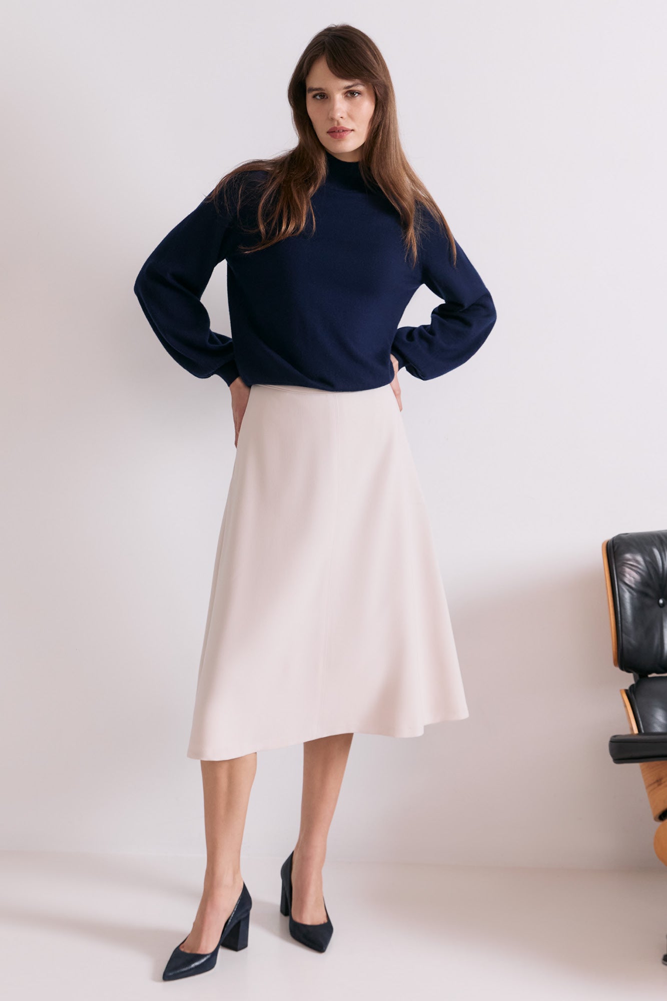 Breeze into the boardroom in our Felsham skirt, cut in a luxurious weighted tailoring that drapes elegantly on the body this A-line skirt adds a touch of chic to any outfit. Elevate your everyday aesthetic in this modern midi skirt.
