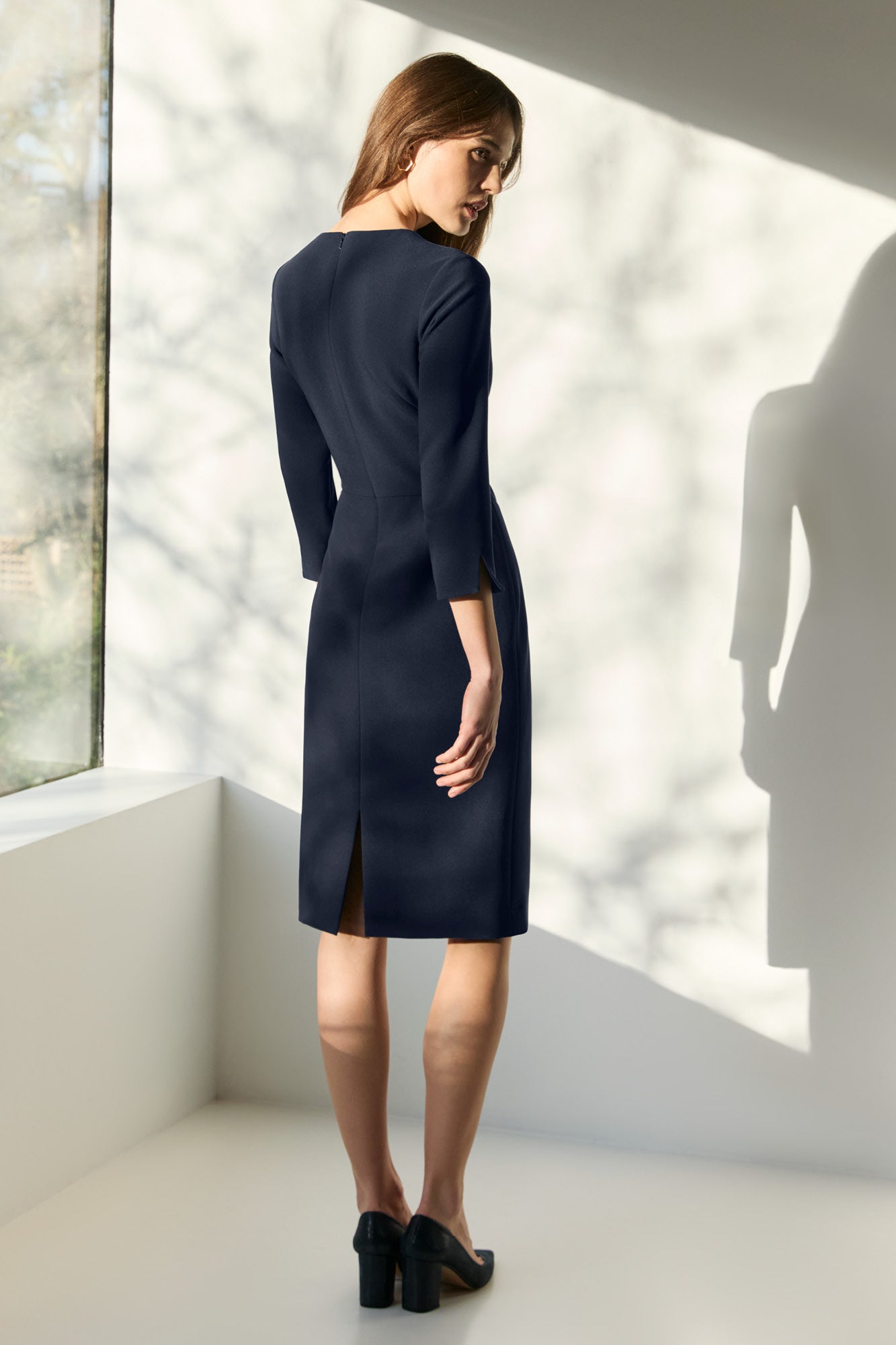 Expertly crafted in our London studio, the Carlton dress will add a sophisticated touch to your work wardrobe. A classic fitted silhouette given a modern 'twist' with its cleverly pleated neckline, perfect for a professional setting. Quintessentially Libby, its timeless design and impeccable fit are sure to make a lasting impression. And did we mention, you can wash it at home?