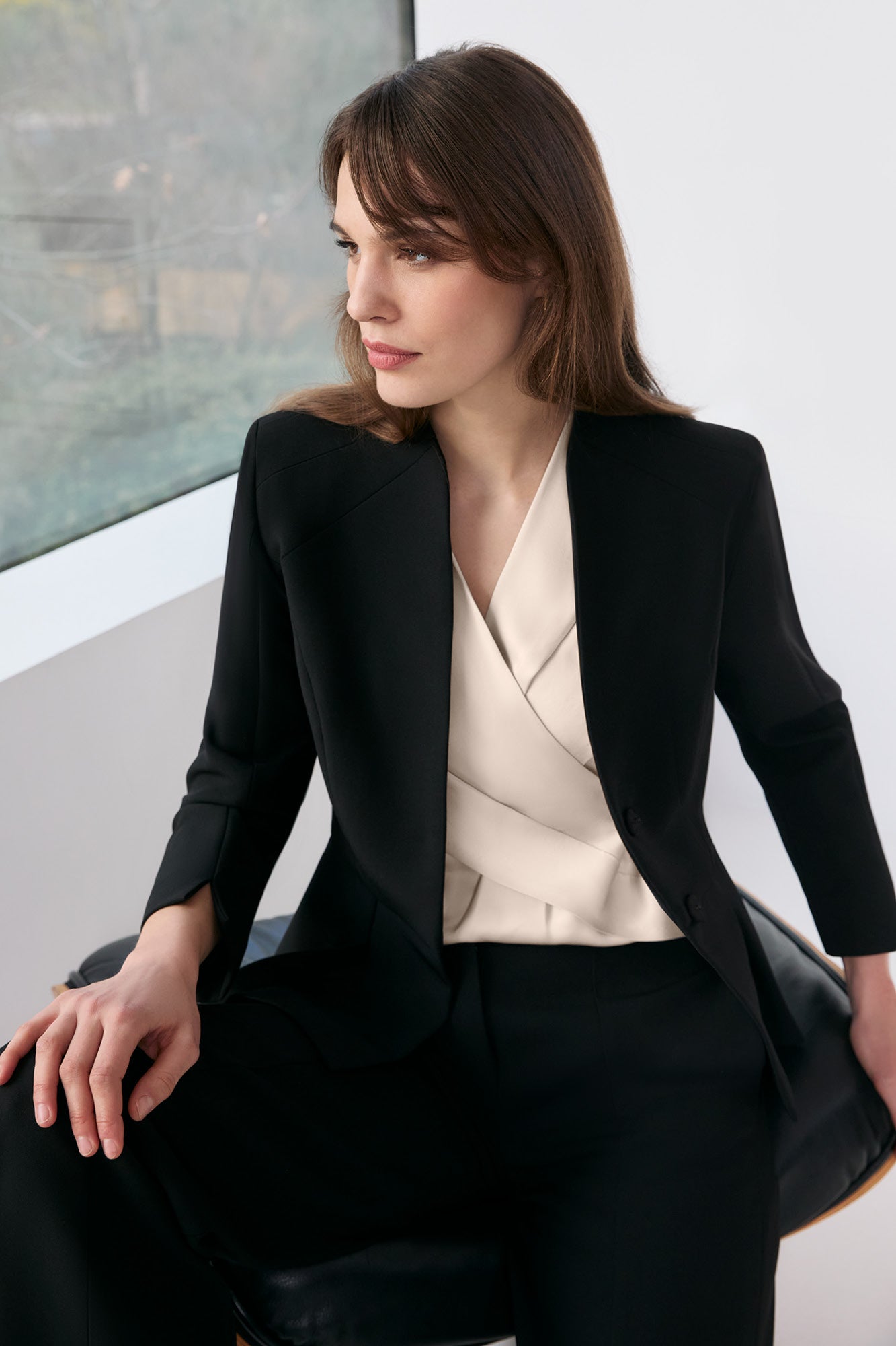 Structured suiting for the modern woman. Expertly tailored, the Hapsburg jacket with its high neck and flatteringly fitted silhouette is an office essential. Thoughtful front pleating adds dimension at the waist, accentuating the frame. Part of our Performance Tailoring range, this suiting is slightly heavier weight with the perfect amount of stretch and a gloriously dry feel.