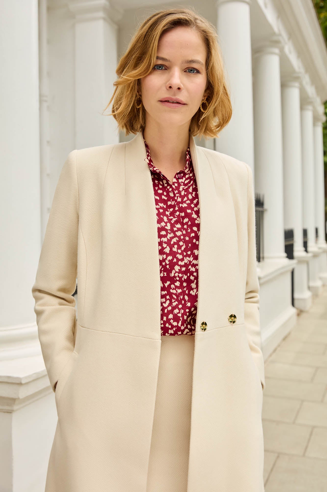 When it comes to wrapping up warm, the Cheltenham coat is understated perfection. Expertly tailored this coat is crafted from a soft wool blend, falling to just below the knees, this versatile piece features a wrap front and tie belt fastening. Wear it over your favourite dresses as you head into the office this winter, you'll be wishing for cold weather. Our cream wool collection will keep you warm and wrapped in elegance.