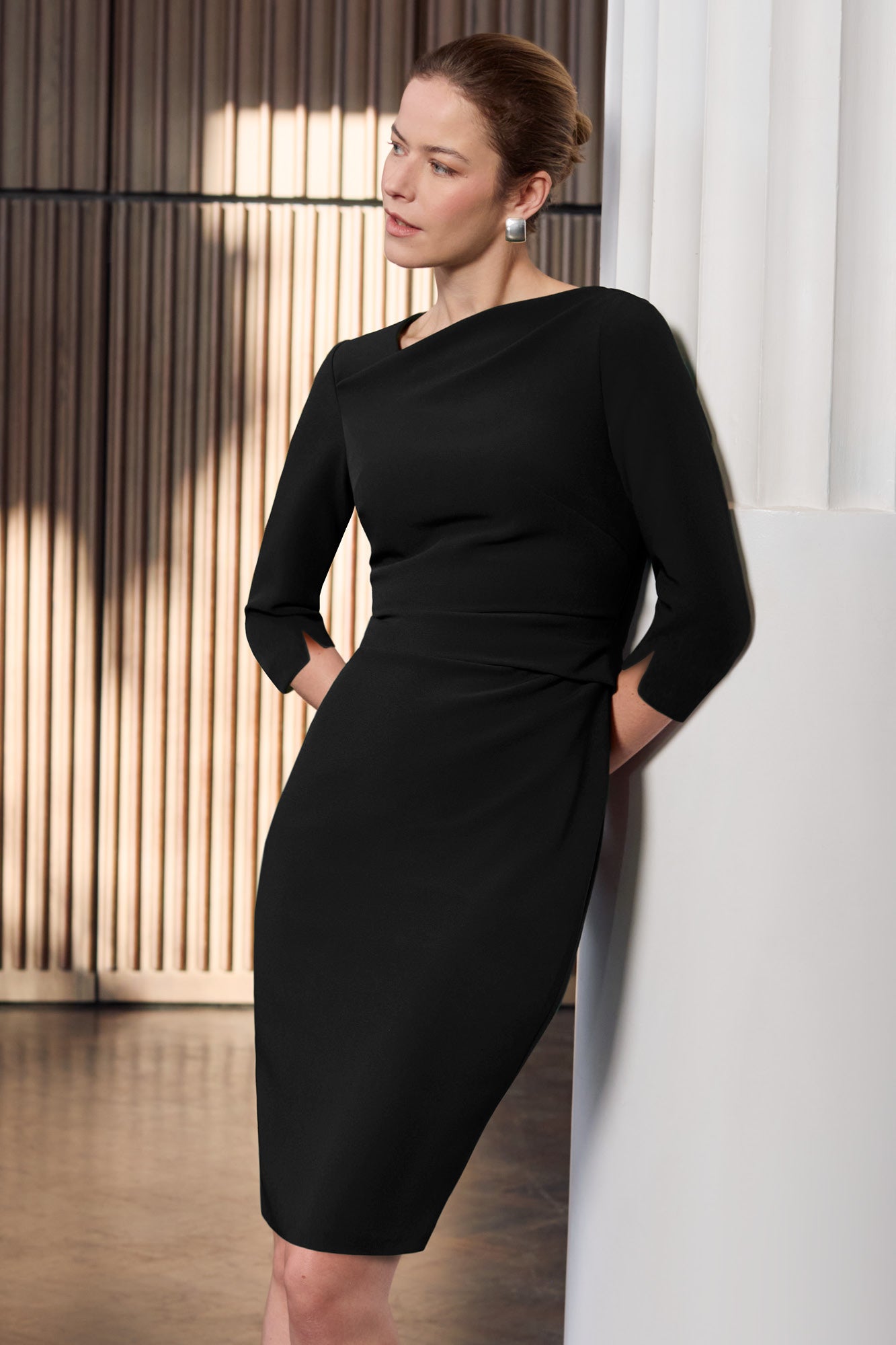 Cut in our signature Performance Tailoring, Cavendish makes use of the fabric's best attributes. The sculpting stretch fits it to your body shape and creates a smooth and streamlined silhouette. Cavendish's folded waistband detail expertly cinches the waist, and its asymmetric neck makes the dress as modern as it is elegant— perfect for the office and special occasions.