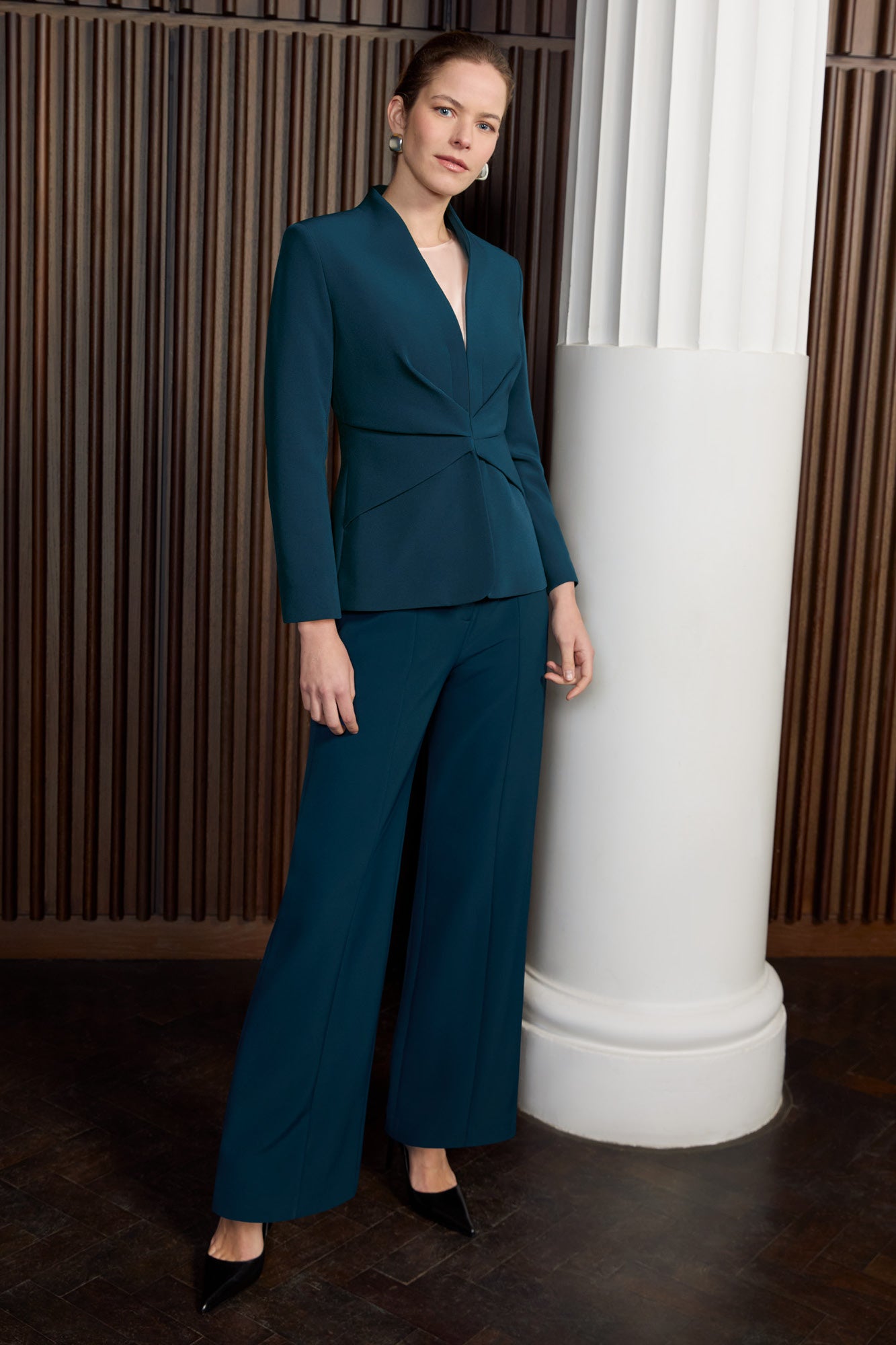 Designed for seamless sophistication, the Hanbury Jacket is the definition of sleek, elegant, professional style. Tailored to perfection, it is finished with a discreet inside hook fastening for a flawless look, the waist-accentuating pleat detail adds a touch of refined femininity. Ending at the hip, it pairs effortlessly with both trousers and skirts. For a polished ensemble, style it with our Davos Trousers and pair with a statement top.