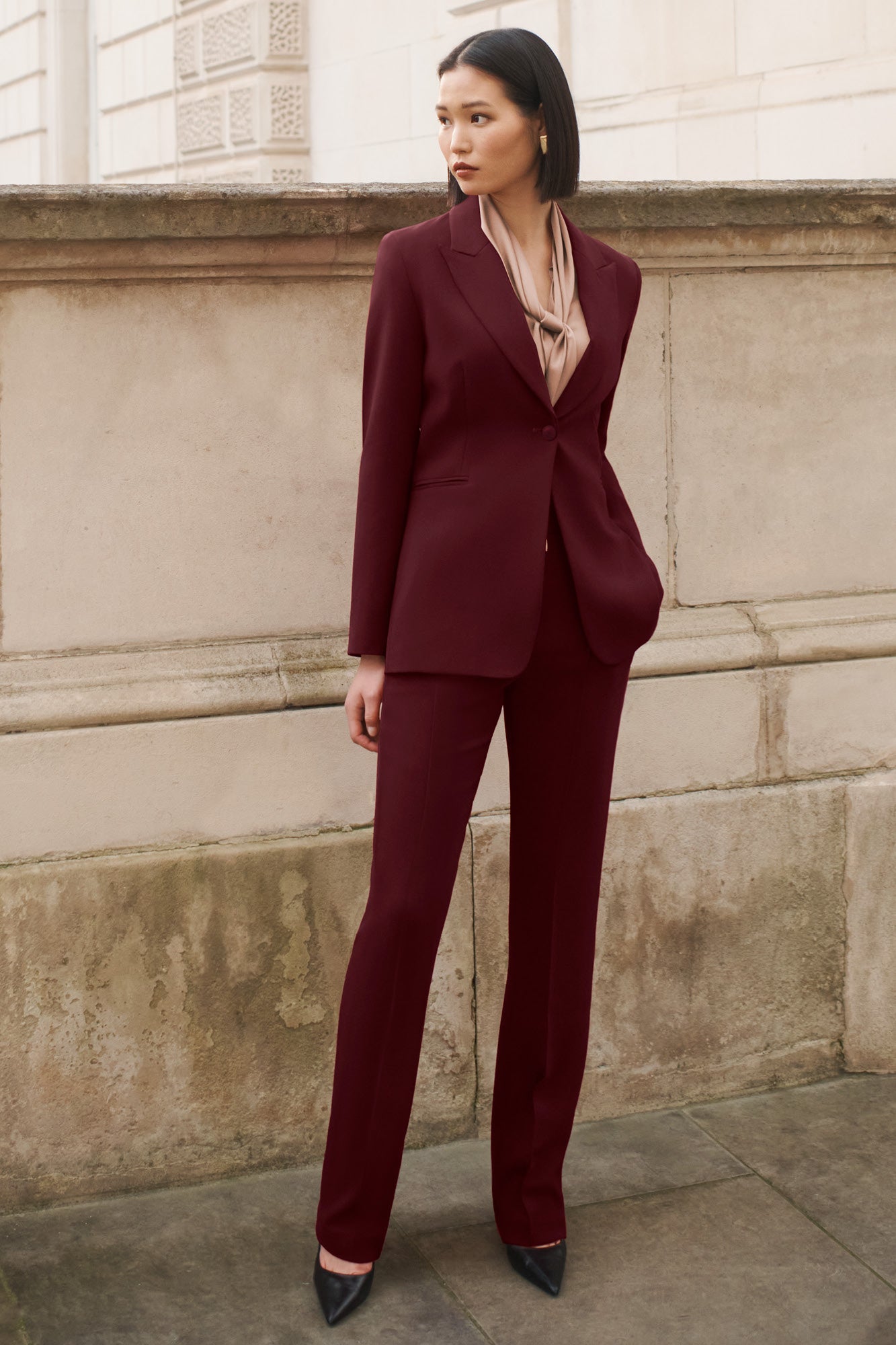 Model wears with our matching Boston Trousers in Claret and our Wellow Blouse in Blush.